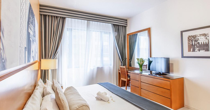 Sunt disponibile 616 camere. Unele camere au balcon, cu vedere la piscină, unde oaspeții se pot relaxa în voie. Fiecare cameră oferă cană-fierbător și mașină pentru prepare cafea sau ceai. Oaspeții pot solicita serviciul de room service pentru a servi masa sau diverse băuturi. În camere există baie cu cadă sau duș ce are în dotare foehn și articole de toaletă gratuite. Camerele confortabile de la Golden Sands Hotel Apartments au pardoseală de gresie/ marmură, aer condiționat, Tv cu canale prin satelit și seif. Oaspeții au acces gratuit la serviciul Wi-fi în camere. Curățenia in cameră se face zilnic. Toate camerele spațioase de la Golden Sands Hotel Apartments au zonă de relaxare cu canapea, ceea ce oferă un plus de confort. Fiecare unitate de cazare include o chicinetă utilată cu frigider, plită de gătit și ustensile de bucătărie. De asemenea, sunt disponibile o zonă de luat masa și un cuptor cu microunde. Proprietatea oferă camere pentru familie cu o suprafață mai mare și un număr mai mare de paturi față de cele standard. Se pot rezerva de asemenea camere pentru nefumători.
