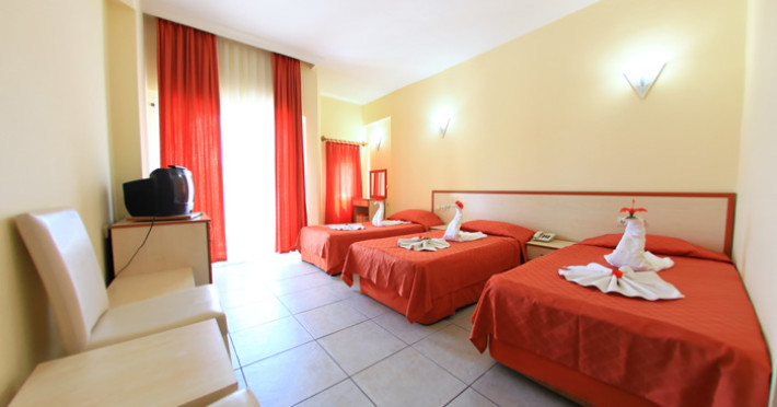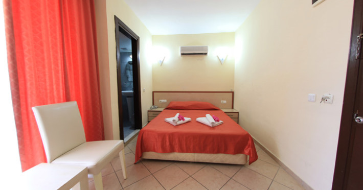 Sunt disponibile 98 camere. Camerele luminoase de la Golden Sun Hotel sunt dotate cu aer condiționat, Tv și seif. În camere există baie prevăzută cu foehn. Unele camere au balcon, cu vedere la piscină, unde oaspeții se pot relaxa în voie. Oaspeții au acces gratuit la serviciul Wi-fi în camere. Curățenia in cameră se face zilnic.