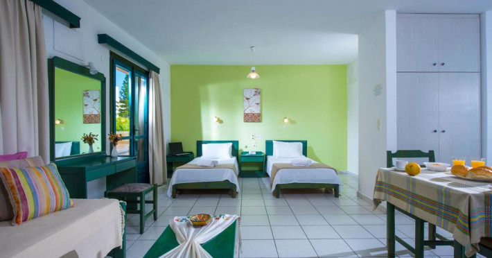 Camerele confortabile de la Golden Sun Studios sunt dotate cu pardoseală de gresie/ marmură, aer condiționat, Tv și seif. În camere există baie cu cadă sau duș prevăzută cu foehn. Fiecare cameră oferă cană-fierbător și mașină pentru prepare cafea sau ceai. Oaspeții pot solicita serviciul de room service pentru a servi masa sau diverse băuturi. Unele camere au balcon cu vedere la oraș sau la grădină. Oaspeții au acces gratuit la serviciul Wi-fi în camere. Toate camerele spațioase de la Golden Sun Studios au canapea în living, ceea ce oferă un plus de confort. Fiecare unitate de cazare include o chicinetă utilată cu frigider, plită de gătit și ustensile de bucătărie. Proprietatea oferă camere pentru familie cu o suprafață mai mare și un număr mai mare de paturi față de cele standard. Se pot rezerva de asemenea camere pentru nefumători.