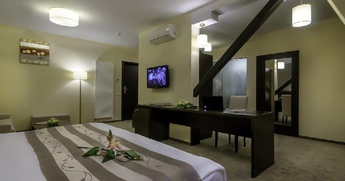 Junior suite este decorat in tonuri pamantii cu mobilier de calitate superioara, ce pune la dispoziLLie un lounge si un colt pentru lectura Poate gazdui pana la 3 persoane, cu o suprafata aproximativa de 29 mp, unele camere fiind prevazute cu balcon.