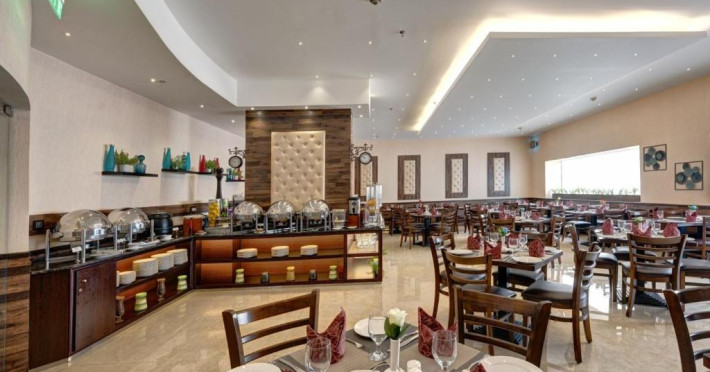 Oaspeții pot savura in fiecare zi un mic dejun tip bufet, continental sau asiatic. Acest hotel găzduiește un restaurant care servește mancăruri din bucătăria indiană, italiană și din Orientul Mijlociu. La cerere, oaspeții pot beneficia și de preparat vegetariene și halal.