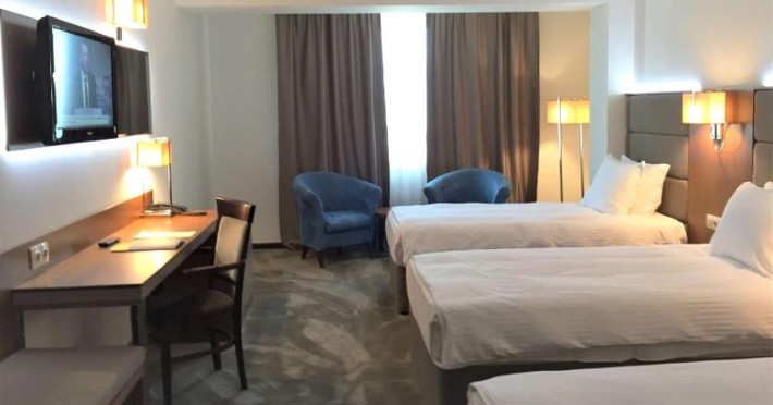 The hotel has 4 junior suites, 5 suites, 25 single rooms and 60 double rooms, which are located on 8 storeys and are reachable by 2 lifts. English-speaking staff at the reception desk in the lobby are ready to assist you with check-in and check-out. Amenities available at the hotel include a baggage storage service and a safe. Wireless internet access allows guests to stay connected while on holiday. The tour desk offers assistance with booking excursions. The hotel has a range of facilities for guests with disabilities. Wheelchair-accessible facilities are available. There are also a number of shops that make for great strolling and browsing. Additional amenities include a newspaper stand, a TV room and a library. Guests arriving by car can park their vehicles in the garage or in the car park. Further services and facilities include a car hire service, medical assistance, a transfer service, room service, a laundry service, a hairdresser, a coin-operated laundry and a hotel shuttle bus. A business centre with fax machine and projector is available. Lectures, presentations and meetings can be held in one of the 3 conference rooms.Datorita dinamicitatii domeniului disponibilitatea ofertelor se modifica de la un moment la altul. De aceea ofertele sunt valabile in limita locurilor disponibile. Agentia nu este responsabila pentru eventualele neconcordante care pot aparea intre informatiile privind tarifele si alte detalii din site si informatiile primite in agentie. In aceste cazuri vor avea prioritate, intotdeauna, informatiile primite in agentie.