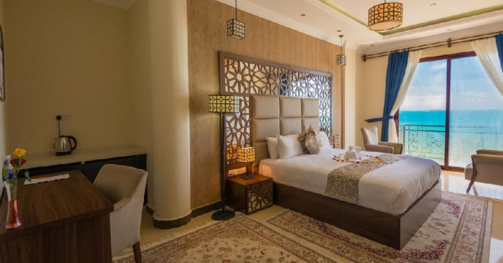 Facilitati hotel: Hotelul Golden Tulip Zanzibar Resort, construit in stil mediteranean in 2011 si renovat in 2016,ofera de 32 unitati de cazare spatioase si modern amenajate dispuse pe 5 etaje.Toate camerele au in dotare chicineta , aer conditionat, TV cu ecran plat cu canale prin satelit si acces gratuit la WI-FI.Camerele au balcoane private,o parte din ele au vedere la ocean sau la piscina.Totodata oaspetii au la dispozitie in camere, un minibar, aparat de cafea ,articole de toaleta gratuite, uscator de par.Camerele au in dotare paturi cu saltele cu spuma de memorie, iar asternuturile sunt din bumbac egiptean.Receptia hotelului e deschisa non- stop si ofera servicii de schimb valutar si de transfer de la si catre aeroportul international Zanzibar.