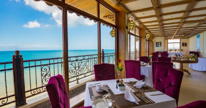 Oaspetii hotelului se pot bucura de meniuri internationale servite la restarurantul Dhow,situat la etajul 5 al cladirii cu vedere atat la ocean cat si la piscina .