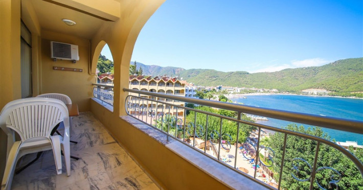 Amplasat în imediata apropiere a malului mării, acest hotel beneficiază de o plajă privată pe coasta Mării Egee și dispune de o piscină în aer liber echipată cu tobogan de apă.Descriere hotel