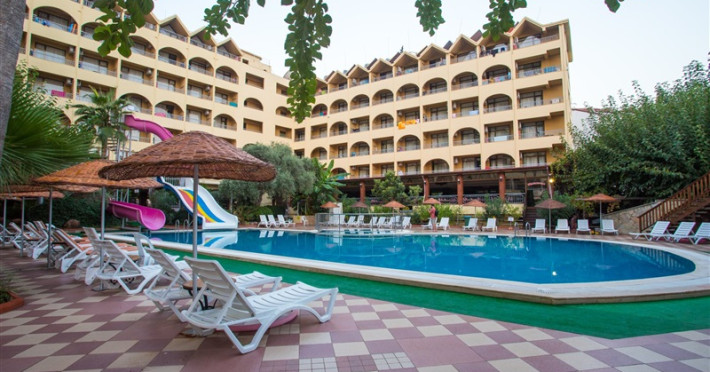 Amplasat în imediata apropiere a malului mării, acest hotel beneficiază de o plajă privată pe coasta Mării Egee și dispune de o piscină în aer liber echipată cu tobogan de apă.