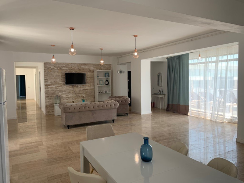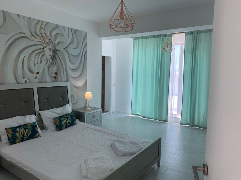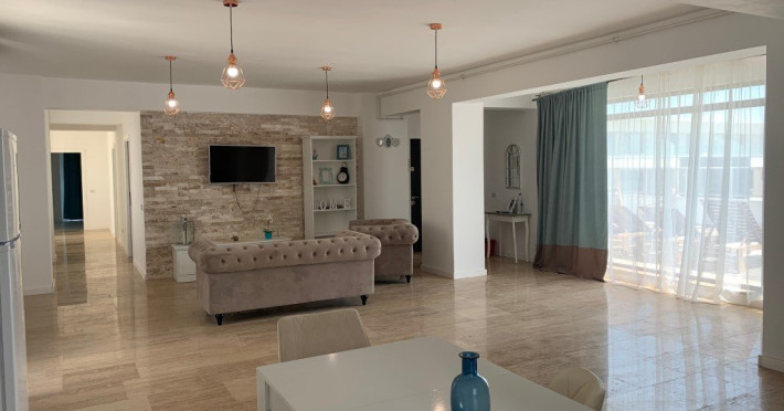 Locatia se afla in zona centrala a statiunii Mamaia Nord, pe promenada in imediata vecinatatea a plajei Mackerel din statiunea Mamaia Nord. Apartamentul este unul exclusivist si se afla la ultimul etaj (6), fiind de tip penthouse ( 270 mp) beneficiind de un living de peste 60 mp, dressing, doua dormitoare, 3 bai ( 2 dintre acestea cu cada) o terasa generoasa dotata cu sezlonguri de plaja si o vedere uimitoare de unde rasaritul este o poveste speciala. Acesta este finalizat in 2021, cu dotari si finisaje deluxe, realizate la un nivel calitativ ridicat.Avand in vedere ca nu avem serviciu de receptie, pentru a va asigura un check-in rapid, va rugam sa ne furnizati informatii privind ora sosirii prin telefon, mesaj, whatsapp, email cu cel putin 3 ore inainte de sosirii. TELEFON: 0735057100