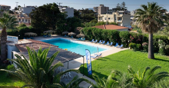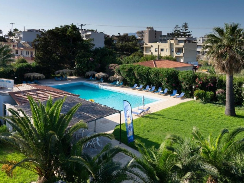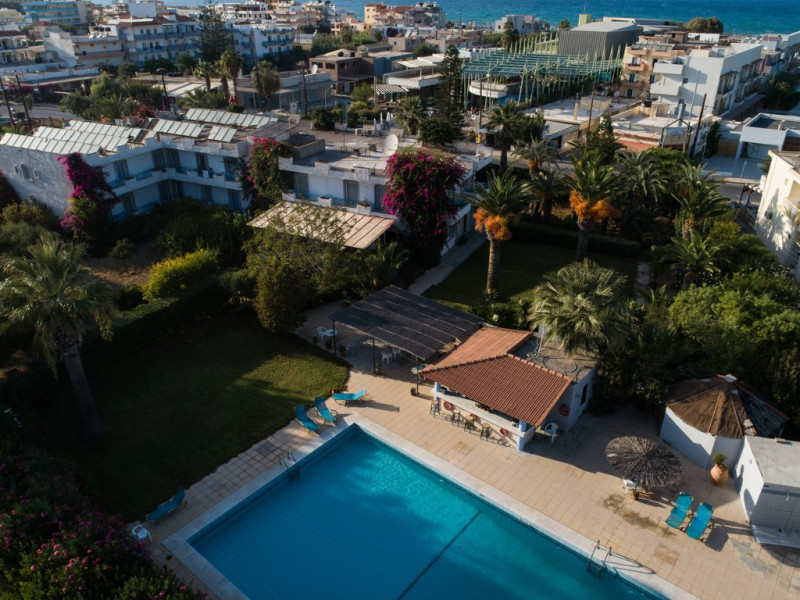 Descriere : Este un hotel cu un bun raport calitate/pret, amplasat in mijlocul unei gradini luxuriante intinse pe o suprafata de 5000 mp.Localizare: hotelul este la aproximativ 10 km de aeroportul din Heraklion.