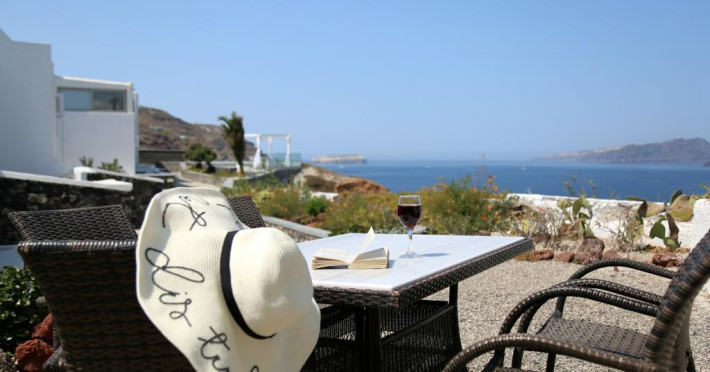 Cel mai apropiat aeroport este Aeroportul Internaţional din Santorini, situat la o distanță de 7,7 km. La cerere proprietatea organizează transfer la/de la aeroport contra cost.