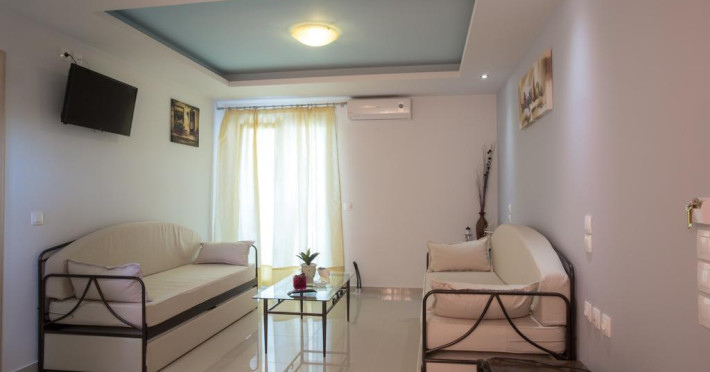 Gouvia are în apropiere o plajă cu nisip. Pe plajă există șezlonguri și umbrele de plajă contra cost.