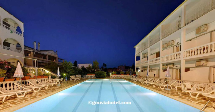Amplasată în Gouvia (Corfu), la 150 m de plaja Gouvia, Gouvia este o proprietate de 3 stele care oferă o piscină în aer liber, terasă cu șezlonguri și umbrele de soare și unități de cazare cu aer condiționat. Proprietatea are servicii de recepție cu program non - stop și închirieri auto. Se oferă acces gratuit la internet Wi-fi în spațiile publice.