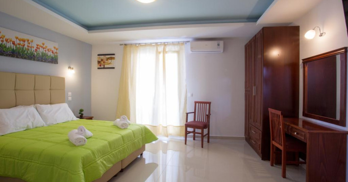Sunt disponibile 81 camere. Camerele confortabile de la Gouvia au pardoseală de gresie/ marmură, aer condiționat, Tv cu canale prin satelit și seif. În camere există baie cu cadă sau duș ce are în dotare foehn și articole de toaletă gratuite. Unele camere au balcon cu vedere la grădină sau la piscină. Oaspeții au acces gratuit la serviciul Wi-fi în camere. Curățenia in cameră se face zilnic. Toate camerele spațioase de la Gouvia au zonă de relaxare. Fiecare unitate de cazare are frigider. Proprietatea oferă camere pentru familie cu o suprafață mai mare și un număr mai mare de paturi față de cele standard. Se pot rezerva de asemenea camere pentru nefumători.