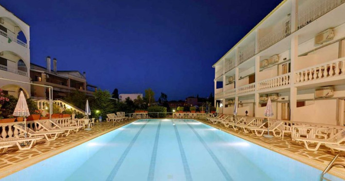 Facilitățile hotelului includ: receptie, restaurant, bar principal, bar la piscina, piscina. Oaspetii pot savura diverse bauturi la barul de la piscina sau la barul principal. Restaurantul ofera preparate din bucataria din insula Corfu si mancaruri internationale. Restaurantul este, de asemenea, disponibil pentru a viziona evenimente sportive majore la un televizor LCD mare, savurand gustarile si bauturile preferate.
