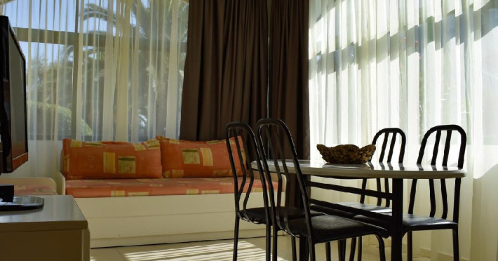 Facilitati camere: 39 de studiouri si apartamente ce beneficiaza de: AC, TV, WiFi, frigider, chicineta, fierbator, filtru cafea, cuptor microunde, uscator de par, baie cu dus/cada, balcon.