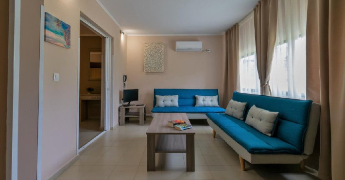 Apartamentul cu un dormitor (45 m2) are 2 paturi twin iar in living canapea extensibila pentru 2 persoane.