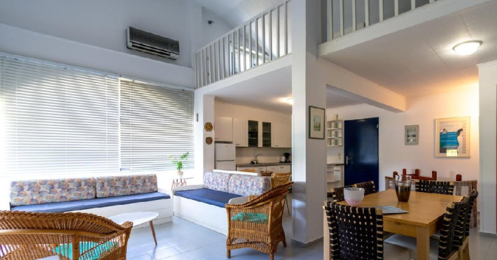 Apartamentul cu 2 dormitoare (65 m2) beneficiaza de dormitor cu 2 paturi twin, living cu canapea extensibila pentru 2 persoane, iar in mansarda se afla 2 paturi twin.