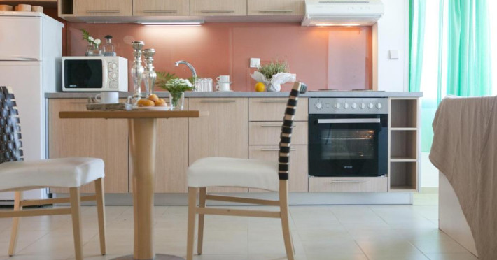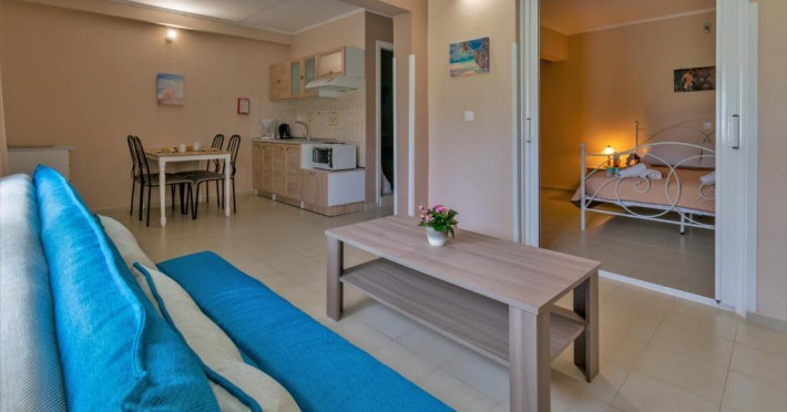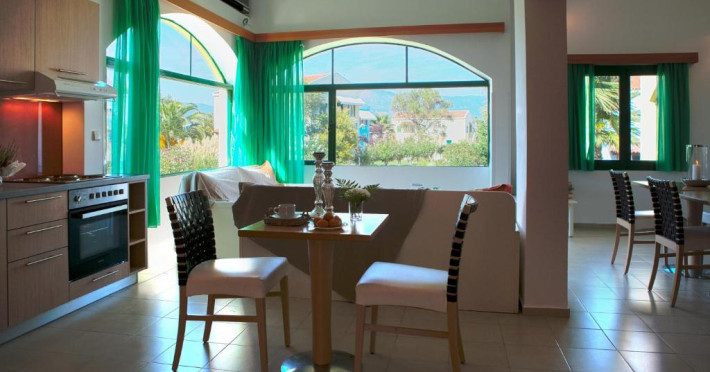În camere există baie cu cadă sau duș ce are în dotare foehn și articole de toaletă gratuite. Camerele confortabile de la Govino Bay - Gouvia au pardoseală de gresie/ marmură, aer condiționat, Tv cu canale prin satelit și seif. Fiecare cameră dispune de mașină pentru preparare cafea sau ceai și fierbător Unele camere au balcon, cu vedere la grădină, unde oaspeții se pot relaxa în compania celor dragi. Curățenia in cameră se face zilnic. Toate camerele spațioase de la Govino Bay - Gouvia au zonă de relaxare cu canapea, ceea ce oferă un plus de confort. Fiecare unitate de cazare include o chicinetă utilată cu frigider, plită de gătit și ustensile de bucătărie. De asemenea, sunt disponibile o zonă de luat masa și un cuptor cu microunde. Proprietatea oferă camere pentru familie cu o suprafață mai mare și un număr mai mare de paturi față de cele standard.
