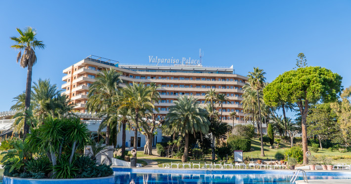 The hotel HOTEL GPRO VALPARAISO PALACE & SPA is located approx. 3 km from a beach and about 300 m from the sea. The nearest bars and restaurants can be found at a distance of around 300 m. The old town is around 2 km away. The nearest shops you can reach within around 800 m, a supermarket is around 150 m away. There is a shuttle between the hotel and the airport (for a fee). In the surrounding a disco (approx. 800 m away), a leisure park (approx. 8 km), an aqua park (approx. 12 km), a theatre (approx. 2 km), a cinema (approx. 500 m) and a golf course (approx. 4 km) offer entertainment during the best time of the year. The beach is patrolled by a lifeguard. The air-conditioned hotel is equipped with a 24h reception (check-in is possible around the clock), a lobby bar, Wi-Fi, a lift, a shop, a boutique, a hairdresser, a jacuzzi, showers and changing rooms, a first aid kit, parking spaces as well as a TV lounge with satellite TV. In the outdoor area you will find a garden as well as a seasonally open, heated salt water pool, where sun loungers, sun umbrellas and pool towels are available for free. There is also a children's pool. Furthermore, outside you can find a sun terrace. Inside the hotel you can use an indoor pool. You can store your valuables in the safe, and your luggage in the hotel`s storage room. For your entertainment, the hotel offers a library/reading room. For very young guests, kid`s chairs, highchairs and cots can be provided. To clean your clothes there are a laundry service (extra fee) and an ironing service. For your comfort, in addition to the concierge service the hotel page will ensure you are looked after. If necessary, you can contact the medical centre at any time. Guests at the accommodation can get a wake-up call from the hotel personnel. For conventions and other business meetings, the hotel offers a business centre as well as a conference area with a total of 450 seats, printer as well as overhead projector. If you want to explore the holiday region, you can use the car and motorbike rental service close to the hotel (extra fee). At the reception, tickets are offered for excursions in the area. For guests on their honeymoon, the hotel has special offers such as special honeymoon packages. In your hotel, a lot of focus is placed on sustainability. This includes the hotel`s own recycling bins and organic food and ecological meals. The hotel requires that all guests pay a deposit upon arrival. Due to its barrier-free facilities , such as barrier-free entrances, wheelchair accessible rooms and wheelchair-accessible bathrooms, the hotel is also suitable for wheelchair users (dimensions: entrance door width: 80 m, lift door width: 80 m, lift depth: 80 m). Catering As catering services the hotel offers half board and breakfast only. Breakfast is offered continental, from the buffet, à la carte or as brunch (extras on request). Lunch and dinner are also served as a set meal, à la carte or from the buffet (extras on request and at extra cost). For the meals, there are a restaurant with terrace (Mediterranean, calorie-reduced, gluten-free and vegetarian dishes) and the cafeteria, a 24h snackbar as well as the pool bar. The drinks menu of the hotel includes 24h international alcoholic beverages. Guests are requested to wear appropriate clothing at lunch. Distances