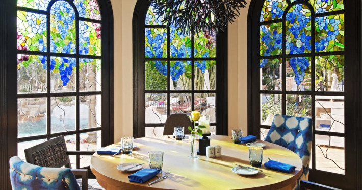 La Gran Bahia Del Duque oaspeții au la dispoziție un restaurant care servește mâncare în stil bufet și à la carte. Masa poate fi servită atât în interior, cît si în aer liber, pe terasă, în funcție de vreme. Oaspeţii pot avea diverse băuturi răcoritoare sau alcoolice la bar. În cadrul proprietății există și un snack bar care servește băuturi și gustări.