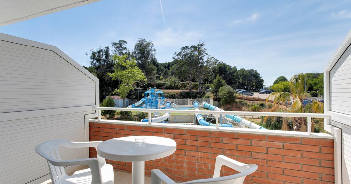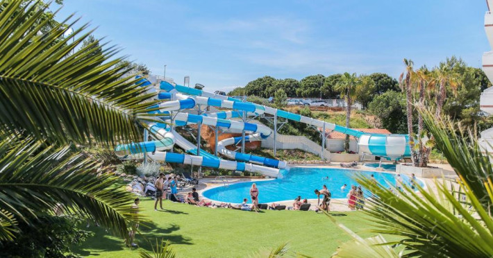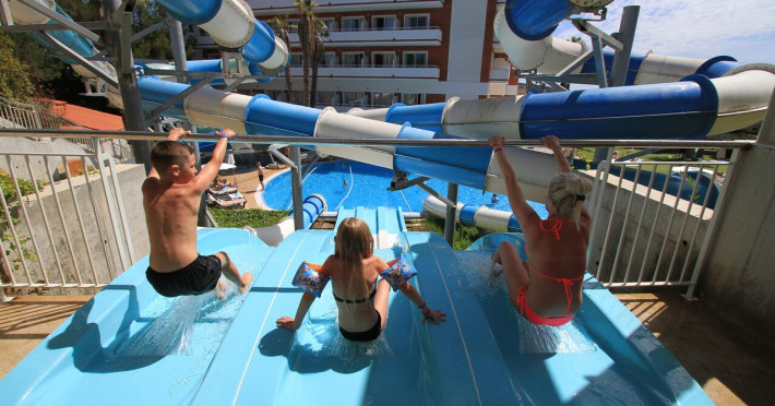 Copiii se pot distra la piscina special amenajată, prevăzută cu tobogane cu apă.
