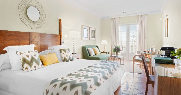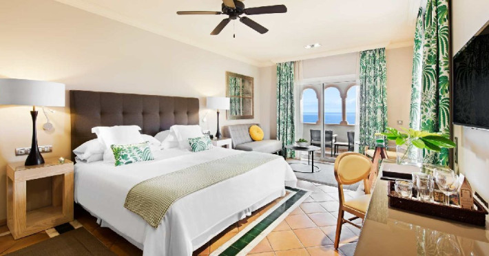 BAHIA DEL DUCALE: sunt camera elegante cu vedere catre plaja El Duque sau catre gradinile exotice ale hotelului
