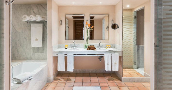 Villa Las Palmeras: este dotata cu 1 dormitor si 1 baie. Facilitati: terasa cu zona de luat masa, piscina, Wi-fi, TV satelit, seif, aer conditionat, In-room Chef (servicii a la carte), mic dejun continental ( 08:00 - 12:00), room service 24h, serviciu majordom 24h, facilitati pt prepararea cafelei si ceaiului, geanta de plaja, meniu aromoterapie pt baie (serviciu a la carte), floating Brunch (serviciu a la carte). Suprafata 202 mp (cu tot cu terasa). Capacitate maxima 3 adulti sau 2 adulti + 2 copii.