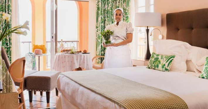 Suita Prezidentiala: situata in inima hotelului, in cladirea Villa Flora, suita este flancata de doua turnulete ale caror acoperisuri albe si verzi sunt inspirate de Casa Maffiote din Santa Cruz de Tenerife, o bijuterie arhitecturala datand din 1926. Suite prezidentiala va va seduce cu decorul sau renovat in stil colonial si terasa ei mare cu jacuzzi s solar, de unde va puteti bucura de vederi spectaculoase la ocean. Dotari: 2 dormitoare, 2 bai, terasa, jacuzzi exterior, Wi-fi, TV satelit, seif, aer conditionat, minibar, room service 24h, geanta de plaja, facilitate pt prepararea cafelei si ceaiului. Suprafata (calculata fara terasa sau balcon) 90 - 100 mp. Capacitate maxima 5 prsoane. Vedere la mare.