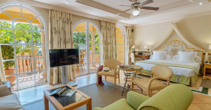 Suite sunt dotate cu: 1 dormitor, 1 baie, terasa sau balcon, Wi-fi, TV satelit, seif, aer conditionat, minibar, room service 24h, geanta de plaja, facilitate pt prepararea cafelei si ceaiului, serviciu majordom. Suprafata (calculata fara terasa sau balcon) 50 - 60 mp. Capacitate maxima 3 adulti sau 2 adulti + 2 copii. Vedere la mare, la gradina sau spre nord.