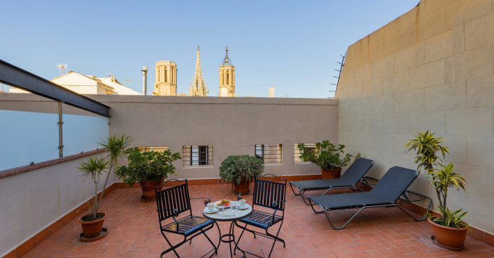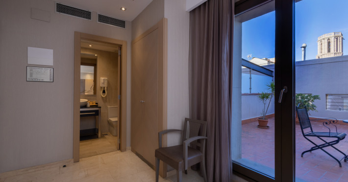 About 1 km from a beach lies the 4 star hotel Gran Hotel Barcino Barcelona. The nearest bars and restaurants are located directly next to the building. Shops are right on your doorstep. The seasonally air-conditioned hotel is equipped with a 24h reception (check-in is possible around the clock), a lobby, Wi-Fi, a lift as well as a first aid kit. Your valuables can be stored in the hotel safe. In addition, the hotel Gran Hotel Barcino Barcelona is video-monitored 24h a day. For very young guests, cots can be provided (for a fee). There is also a laundry service available at an additional cost to customers as well as an ironing service. For your comfort, in addition to the concierge service the hotel page will ensure you are looked after. Guests at the accommodation can get a wake-up call from the hotel personnel. The energy supply is 230 Volts. If you want to explore the holiday region, you can use the car rental service close to the hotel (extra fee). In your hotel, a lot of focus is placed on sustainability. This includes among others the provision of soap and shampoo dispensers. Euro/Master Card and Visa are accepted as means of payment. Due to its barrier-free facilities , such as an automatic hotel door, barrier-free entrances, wheelchair accessible rooms, a wheelchair accessible lift and wheelchair-accessible bathrooms, the hotel is also suitable for wheelchair users. Catering Breakfast is offered from the buffet. Distances