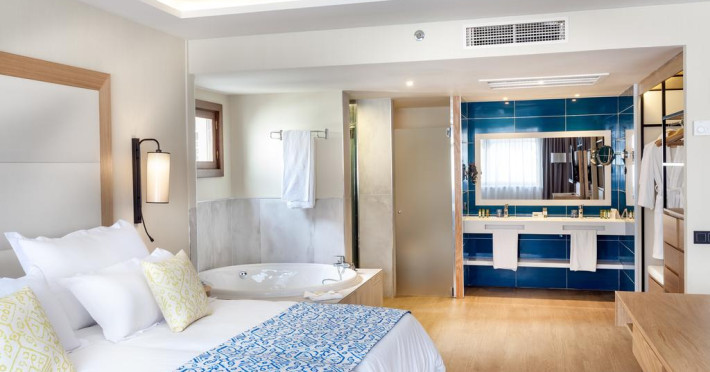 Camerele hotelului sunt spatioase si ofera vederi spectaculoase spre mare sau gradinile hotelului si piscine. Acestea sunt dotate cu baie cu cada si cabina de dus cu masaj si alte accesorii, terasa spatioasa, seif, televizor prin satelit, mini-bar.