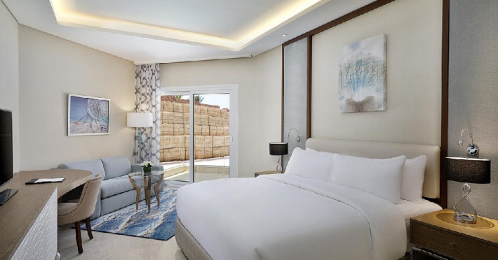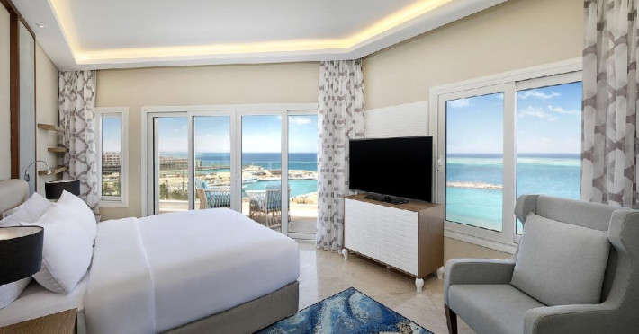 Hotelul Hiton Plaza este renovat complet in anul 2019, situat pe o plaja privata, la 5 minute de centrul orasului Hurghada si la 15 minute cu masina de aeroport.