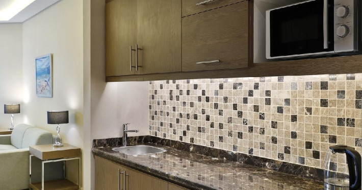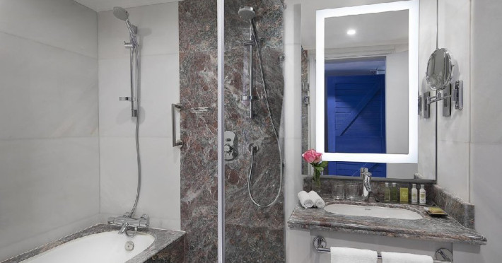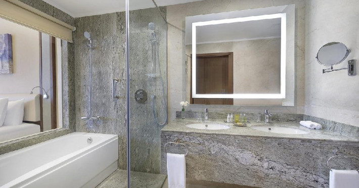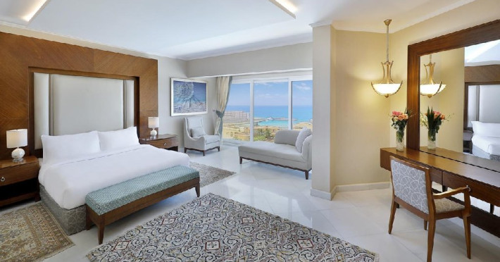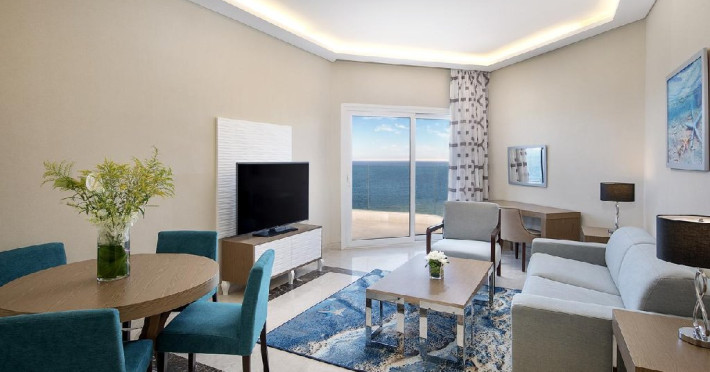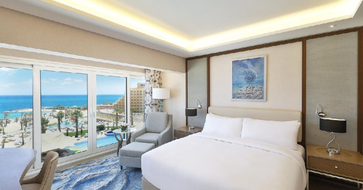 Facilitati camere: Hotelul dispune de 495 de camere si sunt dotate cu aparat de aer conditionat si un sistem de incalzire. Majoritatea spatiilor de cazare au vedere catre mare. Camerele dispun de un pat King Size si de o canapea. Sunt disponibile dormitoare separate. Pot fi solicitate paturi suplimentare sau paturi pentru copii. De asemenea, sunt dotate cu un seif, un minibar si un birou. In chicineta se afla un frigider, un minifrigider si un aparat pentru cafea si ceai. Clientii se bucura de mult confort si datorita setului de calcat. In plus, exista un telefon, un televizor cu ecran plat cu canale prin satelit si Wifi. In camera, turistii vor gasi ziarul cotidian. Baia dotata cu bideu, uscator de par si halate de baie. Se ofera spre rezervare 4 camere adaptate pentru scaun rulant. Pentru familiile cu copii sunt disponibile camerele de familie.