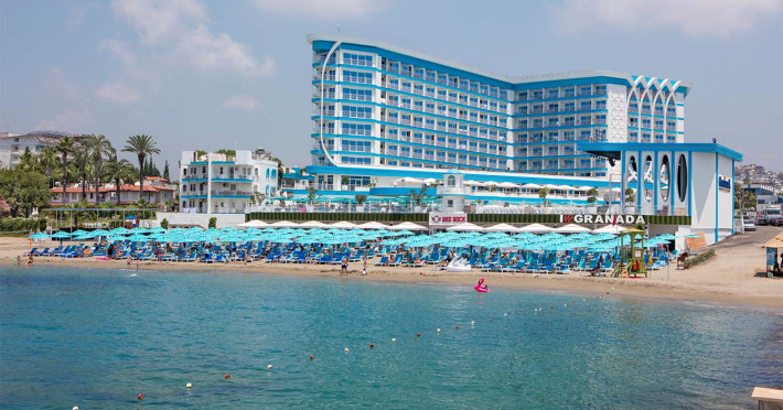 Granada Luxury Beach se afla în Centrul de Turism Avsallar din Alanya, cel mai mare și mai modern oraș din Antalya, care a avut dreptul de a fi capitala turistică a Turciei, țara cu plina de locuri fermecatoare și privilegii unice. Hotelul se afla la 104 km de Aeroportul Antalya, la 67 km de Aeroportul Gazipaşa, la 24 km de centrul orașului Alanya și la 43 km de Side Ancient City. Proiectat arhitectural cu o abordare modernă tropicală, Granada Luxury Beach se află pe malul mării.Localizare hotel
