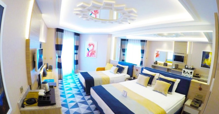 Acest hotel pune la dispoziție camere care includ aer condiționat, un birou, un ibric electric, un minibar, o cutie de valori, un televizor cu ecran plat, un balcon și o baie proprie cu duș. La Granada Luxury Beach-Ultra All Inclusive, camerele au lenjerie de pat și prosoape.
