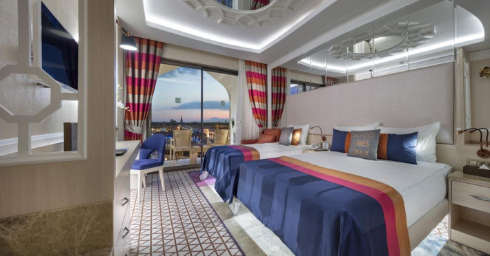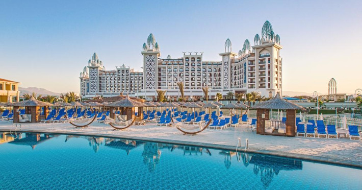Hotelurile noastre au fost concepute pentru a va lasa cu amintiri de vacanta de neuitat, cu piscinele sale magnifice, locurile de divertisment si infrastructura unica amplasata pe o suprafata de 100.000 m2 in Belek, perla Mediteranei. Hotelul ofera servicii si facilitati de calitate asigurand asttfel oaspetiilor sai siguranta unei vacante de neuitat. Hotelul detine 872 de camere modern decorate si dotate cu facilitati precum: aer conditionat, televizor, internet WiFi, telefon, seif, minibar, facilitati pentru ceai/cafea, baie, uscator de par, papuci si balcon. Pentru copii, hotelul ofera piscina exterioara, loc de joaca, miniclub, minicinema, minidiscoteca, restaurant si servicii de babysitting (la cerere – contra cost). Acest hotel nu accepta unul sau mai multi barbati in aceeasi camera!Localizare