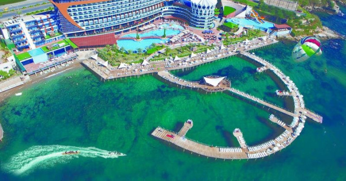 Granada Luxury Hotel - Okurcalar- AntalyaGranada Luxury Resort este un hotel modern din Alanya care se bucura de o priveliste superba spre mare. Hotelul va va impresiona cu pontonul de o frumusete neegalata si cu un design practic si unic, oferind poate cea mai frumoasa panorama catre mare.