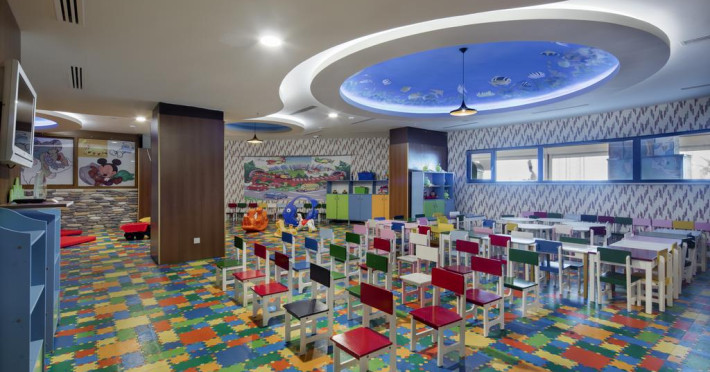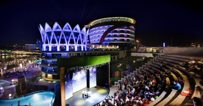 Restaurant principal, 6 restaurante a la carte (turcesc, italienesc, chinezesc, pescaresc, rusesc, Tappanyaki), 8 baruri, piscina exterioara , piscina pentru copii , aquapark, piscina interioara, sauna, baie turceasca, baie cu aburi, centru fitness, mini club, programe de animatie, discoteca, spectacole in timpul serii, muzica live, cinema, discoteca si cinema pentru copii, tenis de masa, darts.
