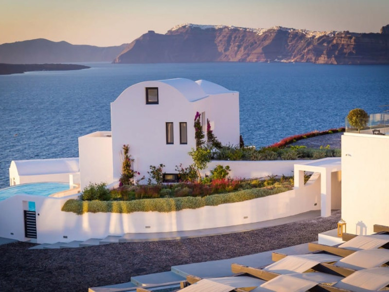 Perched on the edge of the cliff, overlooking the imposing caldera and the emblematic volcano of Santorini, Ambassador Aegean Luxury Hotel & Suites welcomes you to Akrotiri. One of the finest, most privileged spots on the island with spectacular vistas that take your breath away and compose the idyllic backdrop for an unforgettable stay.The Ambassador Aegean Luxury Hotel & Suites experience is enhanced through exclusive signature details that transcend the expectations of even the most discerning guests, such as the private helipad or the golf cars available for guests who wish to move around the property effortlessly.Indulge in unpretentious luxury, experiencing the true meaning of impeccable services and refined, elegant accommodation.Perched on the edge of the cliff, overlooking the imposing caldera and the emblematic volcano of Santorini, Ambassador Aegean Luxury Hotel & Suites welcomes you to Akrotiri. One of the finest, most privileged spots on the island with spectacular vistas that take your breath away and compose the idyllic backdrop for an unforgettable stay.The Ambassador Aegean Luxury Hotel & Suites experience is enhanced through exclusive signature details that transcend the expectations of even the most discerning guests, such as the private helipad or the golf cars available for guests who wish to move around the property effortlessly.Indulge in unpretentious luxury, experiencing the true meaning of impeccable services and refined, elegant accommodation.