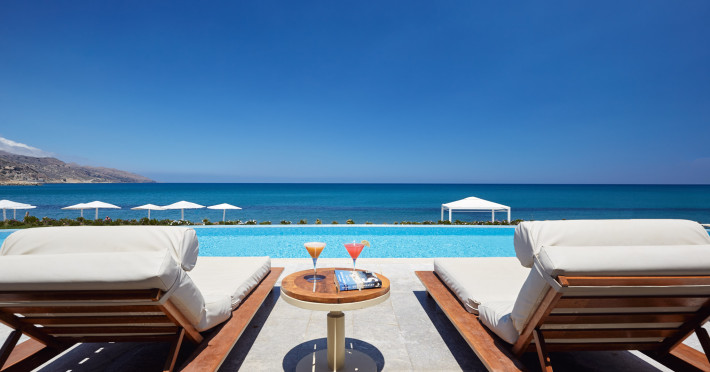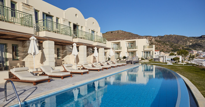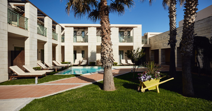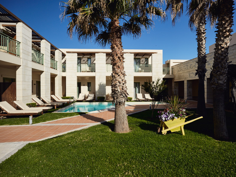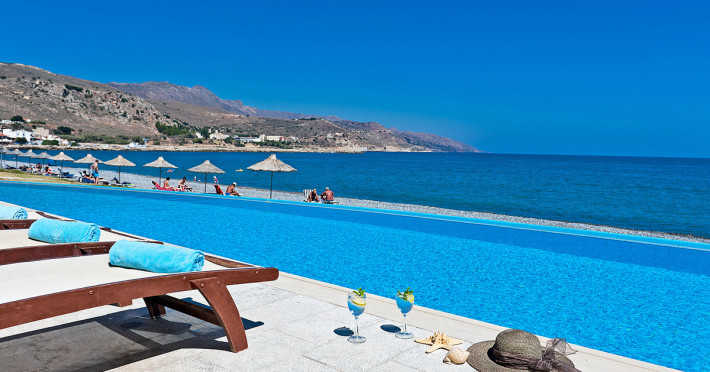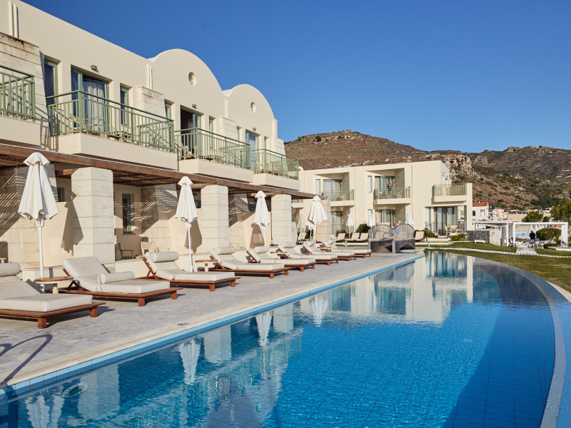 Operating as an “Adults Exclusive” (minimum age of guests is 16 years of age) The resort is made up of 78 accommodation units (link to accommodation), a main swimming pool, a privately shared swimming pool designated to specific units, a main bar, pool bar, main buffet restaurant, the exclusive Azzuro a la carte restaurant, a play room and a fitness room.The sandy and pebble beach is just steps from the main swimming pool – perfect for spending your time basking in Crete’s summer sun and enjoying quality time.
