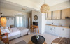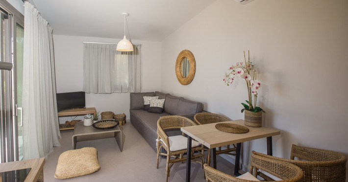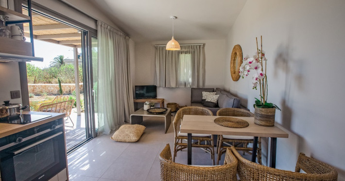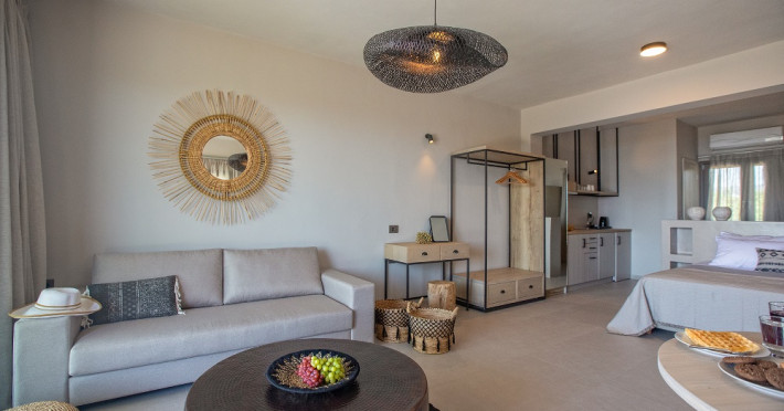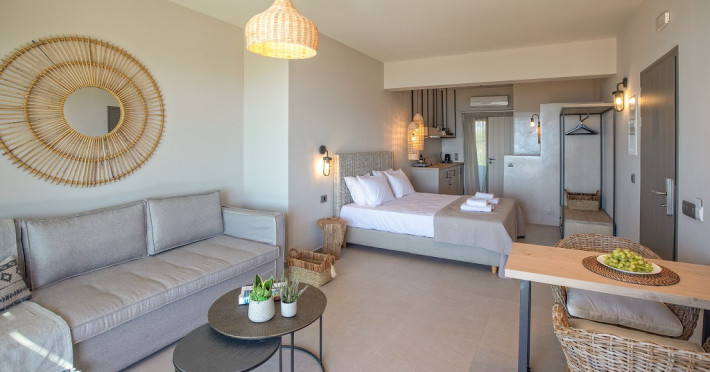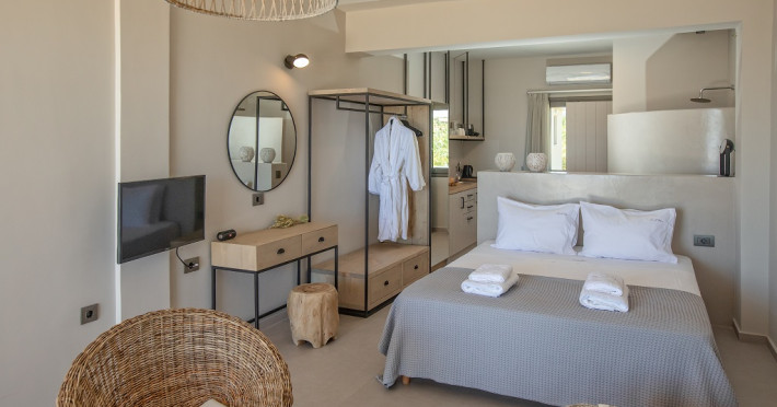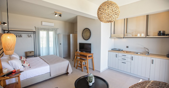 #34;Grand Blue Beach Residences#34;, is a unique group of self-catering units located at the south part of the beautiful #34;Paliki#34; peninsula and more specifically at the area of the stunning #34;Xi#34; beach. This amazing accommodation complex is ideal for all guests who want to spend their time by the seathe beach is literally at the bottom of the garden area.Simply opening the door of your suite or apartment, walk along the beautiful wooden pathway to the end of the garden and walk straight onto your very own secluded sandy cove. #34;Xi beach#34; is a long beach, noted for the aquamarine waters amp; unique color of its sand. This beach is consistedof fine grained coppertoned sand giving a unique look to the area.#34;Paliki#34; is a rural area with charming villages surrounded by unique amp; utterlybeautiful nature landscapes. #34;Lixouri#34; - the main town of the peninsula amp; second largest city of the island - is within a 15-min drive apprx from the establishmentand the capital of the island #34;Argostoli#34; is within a 50 min drive apprx. #34;Lixouri#34; is also connected to #34;Argostoli#34; on a daily basis with ferry boats. _REFERENCE POINTS_ * Airport: Kefalonia International #34;Anna Pollatou#34; [EFL] : 48.9km * Beach: Xi : 0 m * City center: Lixouri city : 6.1km * Port: Lixouri port : 6.8km _POINTS OF INTEREST_ Gerogompos lighthouse: 9.9 km || Monastery of Kipouria: 13.1 km || Petani beach: 19.3 km || Myrtos beach : 37.5 km || Melissani lake: 47.6 km || Monastery of St.Gerasimos: 47.6 kmDatorita dinamicitatii domeniului disponibilitatea ofertelor se modifica de la un moment la altul. De aceea ofertele sunt valabile in limita locurilor disponibile. Agentia nu este responsabila pentru eventualele neconcordante care pot aparea intre informatiile privind tarifele si alte detalii din site si informatiile primite in agentie. In aceste cazuri vor avea prioritate, intotdeauna, informatiile primite in agentie.