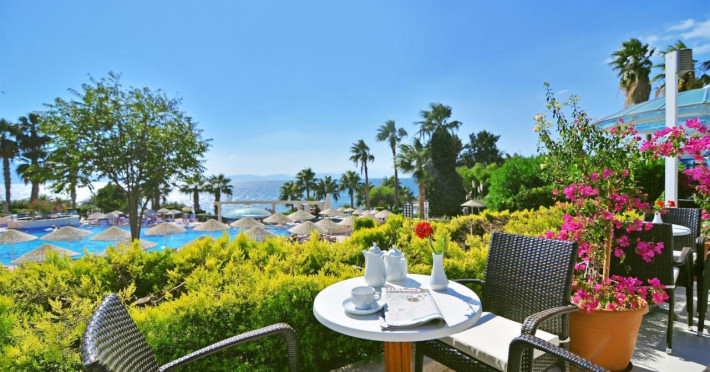 Localizare: Hotelul este situat in apropiere de Green Beach si la 73 km de Milas-Bodrum Airport. Facilitati hotel: 2 piscine , WiFi gratuit, transfer de la și/sau la aeroport, acces imediat la plajă, spa și centru de wellness, sală de fitness, restaurant, parcare gratuită, bar, zonă de plajă privată. Dotări camere: balcon, WiFi gratuit, vedere la gradina, aer conditionat, baie privata, TV cu ecran plat, Terasa, Minibar. Servicii contra cost: serviciu de transfer, serviciu de curatatorie si calcatorie, snorkelling, scufundari, facilitati sporturi nautice, pescuit, echipament tenis, biliard, masaj, sala fitness, spa si centru wellness, sauna, jacuzzi. IMPORTANT: Descrierea hotelului se bazeaza pe detaliile disponibile la momentul pregatirii tarifelor pentru sezonul turistic ce urmeaza a se desfasura si are caracter pur informativ. Hotelul poate aduce modificari de structura, denumiri camere, tip serivicii incluse/neincluse si altele, fara a notifica in prealabil. Pentru informatiile oficiale va rugam sa consultati website-ul hotelului.Datorita dinamicitatii domeniului disponibilitatea ofertelor se modifica de la un moment la altul. De aceea ofertele sunt valabile in limita locurilor disponibile. Agentia nu este responsabila pentru eventualele neconcordante care pot aparea intre informatiile privind tarifele si alte detalii din site si informatiile primite in agentie. In aceste cazuri vor avea prioritate, intotdeauna, informatiile primite in agentie.