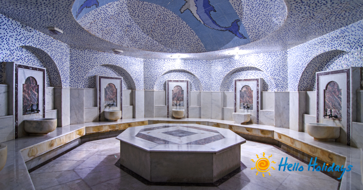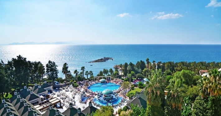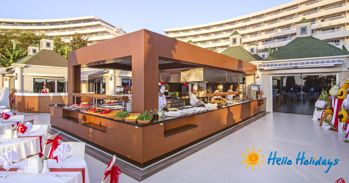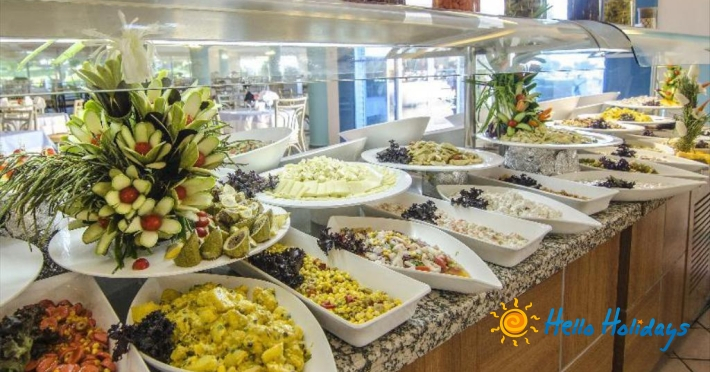 Grand Blue Sky dispune de receptie 24 h, zona de lobby, restaurant principal unde se pregatesc gustari delicioase, arome locale, preparate din ulei de masline și alte bunatati. Va stau la dispozitie restaurante A'la carte cu specific italian, otoman, 5 baruri, piscina cu secțiune pentru copii, mini-club, sauna, baie turceasca, masaj (contra-cost), sala de fitness, aerobic, darts, biliard, terenuri de tenis, tenis de masa, animație, muzica live, discoteca și internet wireless.