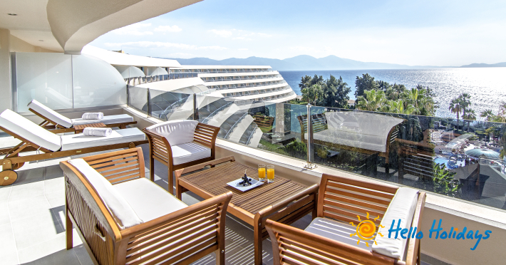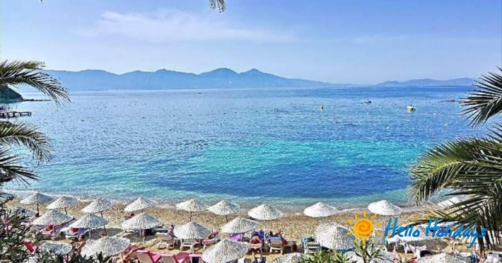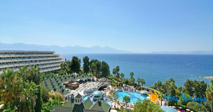Hotelul este situat la 75 km de aeropotul Izmir și la 3 km de centrul orasului Kusadasi. Efes orasul antic, unul dintre cele mai vizitate obiective turistice, se afla la doar 18 km. Grand Blue Sky se află chiar langa renumita "Plaja Doamnelor".