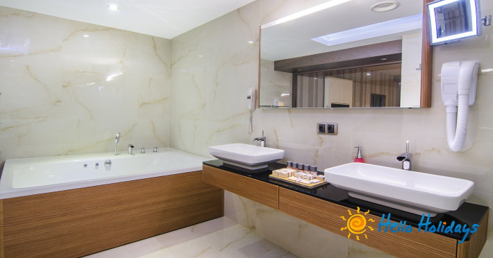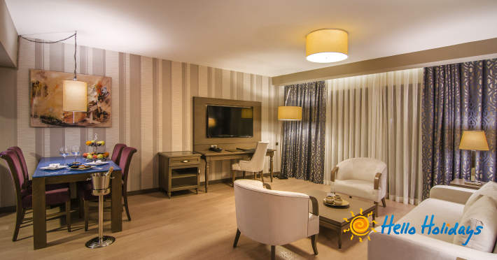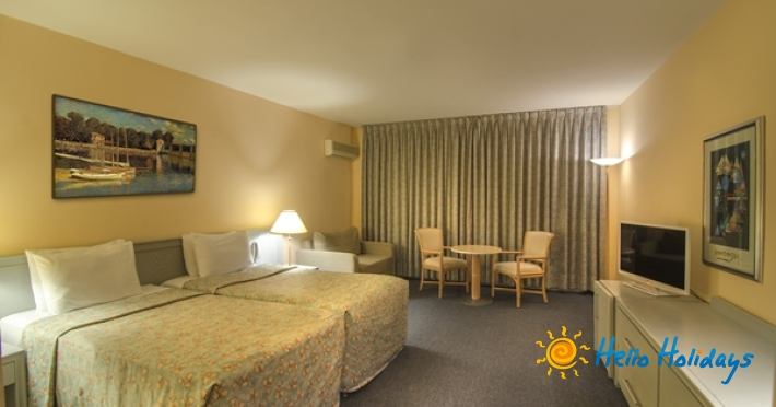 Camerele spatioase si frumos amenajate dispun de: aer condiționat, televizor, telefon, minibar, seif (gratuit), pardoseală cu mochetă, baie cu dus/cadă, uscator de par, balcon și room-service (contra cost).