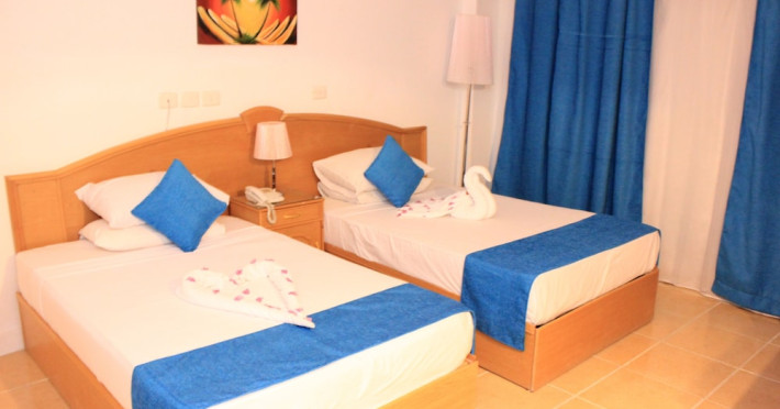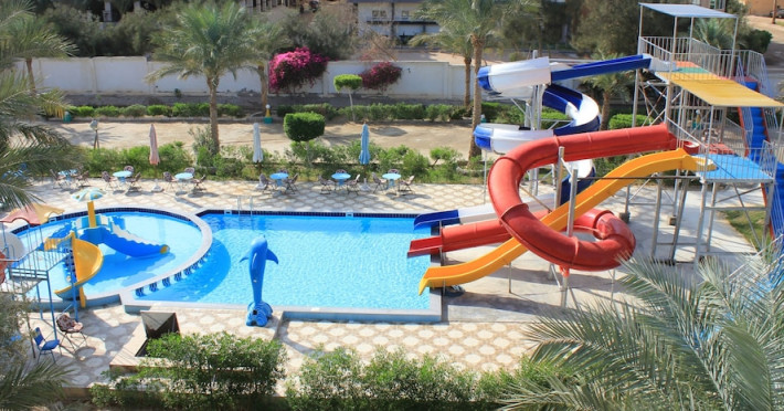 In Hurghada (Al Mamsha El Seyahi). A stay at Grand Blue St Maria Hotel Aqua Park places you in the heart of Hurghada, a 2-minute drive from Hurghada Museum and 9 minutes from Senzo Mall. This family-friendly hotel is 7 mi (11.2 km) from Marina Hurghada and 8.9 mi (14.3 km) from Hurghada City Center. Make yourself at home in one of the 150 air-conditioned rooms featuring minibars and LED televisions. Satellite television is provided for your entertainment. Bathrooms feature separate bathtubs and showers with rainfall showerheads. Conveniences include phones, as well as electric kettles and free tea bags/instant coffee. All-inclusive rates are available at this hotel. Meals and beverages at onsite dining establishments are included in all-inclusive rates. Charges may be applied for dining at some restaurants, special dinners and dishes, some beverages, and other amenities. Enjoy a meal at the restaurant or snacks in the hotels coffee shop/cafe. Mingle with other guests at the complimentary reception, held daily. Unwind at the end of the day with a drink at the bar/lounge or the poolside bar. A complimentary buffet breakfast is served daily from 7:30 AM to 9:00 AM. Dip into one of the 5 outdoor swimming pools or enjoy other recreational amenities, which include a complimentary water park. Additional amenities at this Mediterranean hotel include complimentary wireless Internet access, concierge services, and barbecue grills.Datorita dinamicitatii domeniului disponibilitatea ofertelor se modifica de la un moment la altul. De aceea ofertele sunt valabile in limita locurilor disponibile. Agentia nu este responsabila pentru eventualele neconcordante care pot aparea intre informatiile privind tarifele si alte detalii din site si informatiile primite in agentie. In aceste cazuri vor avea prioritate, intotdeauna, informatiile primite in agentie.