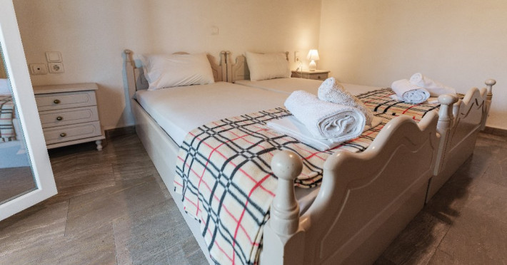 Localizare: Vila este localizata pe nordul coastei insulei Lesbos, in pitorescul sat Anaxos, la 60 de metri distanta de plaja cu acelasi nume. Capitala Mytilene se afla la 56.5 km sau aproximativ 1h si 3 minute de mers cu masina, iar Aeroportul International Mytilene se afla la 62,4 km sau aproximativ 1h si 12 min de mers cu masina.