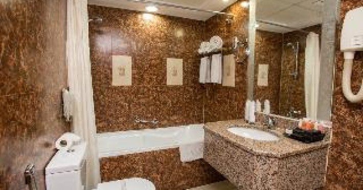 This luxurious hotel enjoys a great location in Deira just minutes from Maktoum Bridge, which connects the old and new sections of Dubai with Jumeirah. The Dubai World Trade Centre and Dubai Exhibition Centre can be reached in under a ten-minute drive and the city centre of Deira is within walking distance. Guests will also find a wide variety of options for shopping and dining nearby. The hotel's inviting guest rooms and suites are equipped with a range of modern amenities such as air-conditioning, cable television and minibar. Guests can choose from a restaurant, two bars and a café to enjoy local and international cuisines, and might choose to relax with a massage in the spa or make use of the gym, pool and sauna after a busy day of meetings, shopping or sightseeing. Whether travelling to Dubai for business or leisure, this comfortable hotel offers a wonderful stay.This luxurious hotel enjoys a great location in Deira just minutes from Maktoum Bridge, which connects the old and new sections of Dubai with Jumeirah. The Dubai World Trade Centre and Dubai Exhibition Centre can be reached in under a ten-minute drive and the city centre of Deira is within walking distance. Guests will also find a wide variety of options for shopping and dining nearby. The hotel's inviting guest rooms and suites are equipped with a range of modern amenities such as air-conditioning, cable television and minibar. Guests can choose from a restaurant, two bars and a café to enjoy local and international cuisines, and might choose to relax with a massage in the spa or make use of the gym, pool and sauna after a busy day of meetings, shopping or sightseeing. Whether travelling to Dubai for business or leisure, this comfortable hotel offers a wonderful stay.