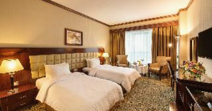 This luxurious hotel enjoys a great location in Deira just minutes from Maktoum Bridge, which connects the old and new sections of Dubai with Jumeirah. The Dubai World Trade Centre and Dubai Exhibition Centre can be reached in under a ten-minute drive and the city centre of Deira is within walking distance. Guests will also find a wide variety of options for shopping and dining nearby. The hotel's inviting guest rooms and suites are equipped with a range of modern amenities such as air-conditioning, cable television and minibar. Guests can choose from a restaurant, two bars and a café to enjoy local and international cuisines, and might choose to relax with a massage in the spa or make use of the gym, pool and sauna after a busy day of meetings, shopping or sightseeing. Whether travelling to Dubai for business or leisure, this comfortable hotel offers a wonderful stay.