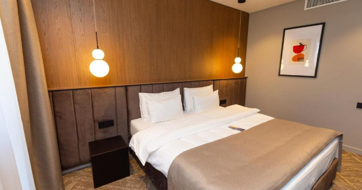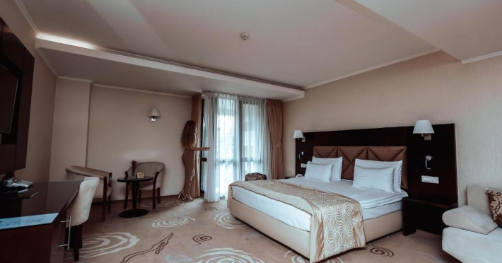 Apartamentul Executive Premium ofera o experienta exclusivista, fiind ideal pentru oaspetii care apreciaza spatiul suplimentar si confortul superior. Apartamentul este compus dintr-o zona eleganta de dormit cu pat matrimonial generos si o zona separata de relaxare, amenajata cu mobilier modern si confortabil. Dotarile includ TV 4K Smart, seif electronic, telefon si minibar.