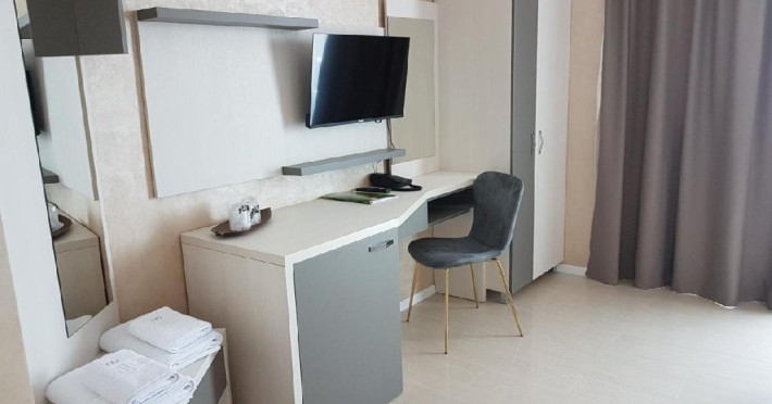 Apartamentele dispun de canapea extensibila in living si pat matrimonial in dormitor, baie cu dus, telefon, internet, uscator de par, aer conditionat, tv, minibar .Apartamentele dispun de espressor si capsule de cafea.